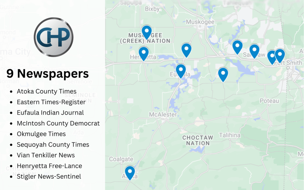Get started by contacting your local Cookson Hills Publishers newspaper today!